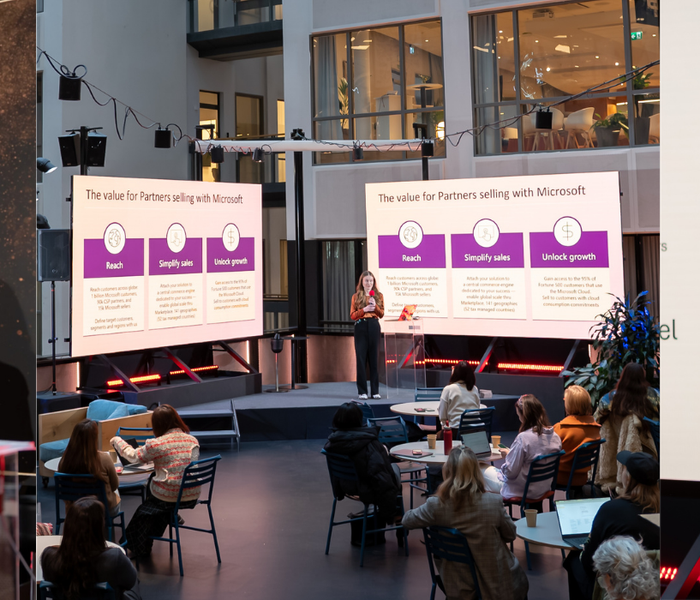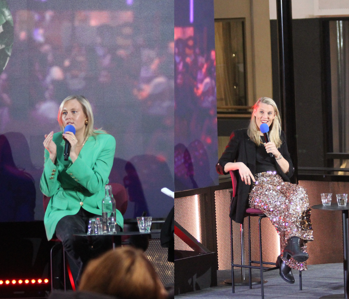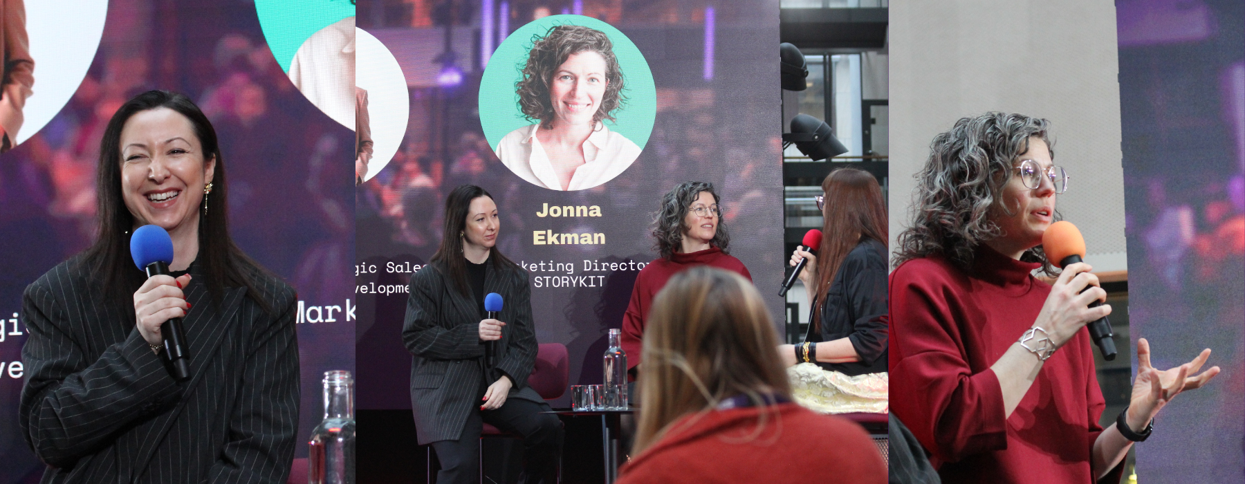 On stage were Azra Dajic, Director of Strategic Sales and Business Development at CGI, and Jonna Ekman, Marketing Director at Storykit.