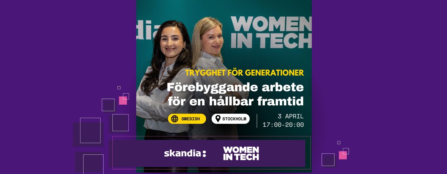 Den 3 april öppnas dörrarna för en exklusiv meet-up, där Skandia och Women in Tech Sweden ser fram emot att kliva in i både Skandias IT-värld och Skandias stiftelse Idéer för Livets viktiga arbete. 💜💚