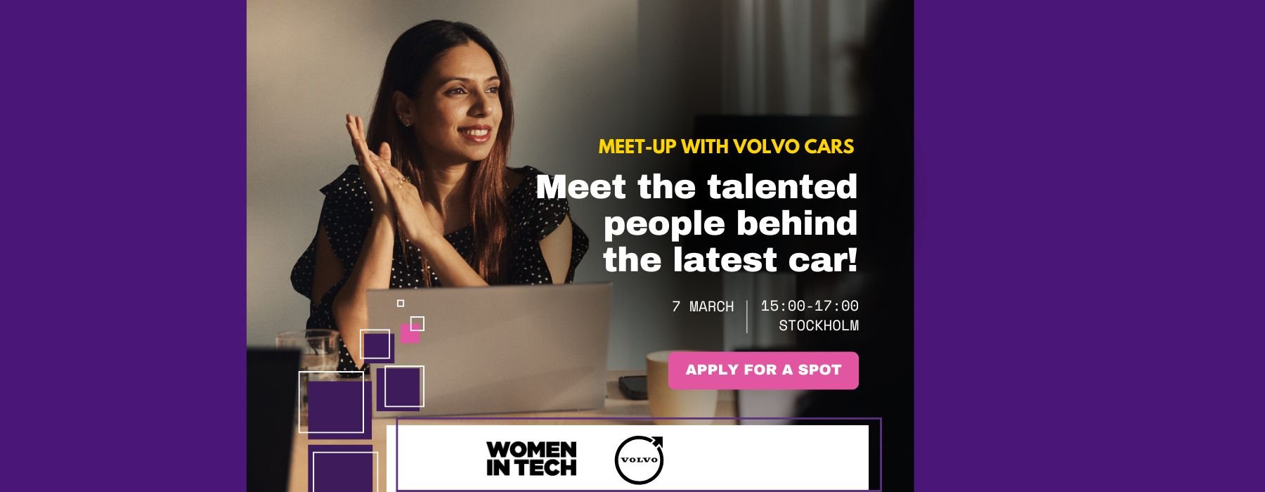 WHO You are someone in your early- to mid-career (including students!) and you are excited to connect with other women in the field! You’re curious about Volvo Cars as a company—and potentially as an employer—and you’re probably also a bit excited to see the new car.